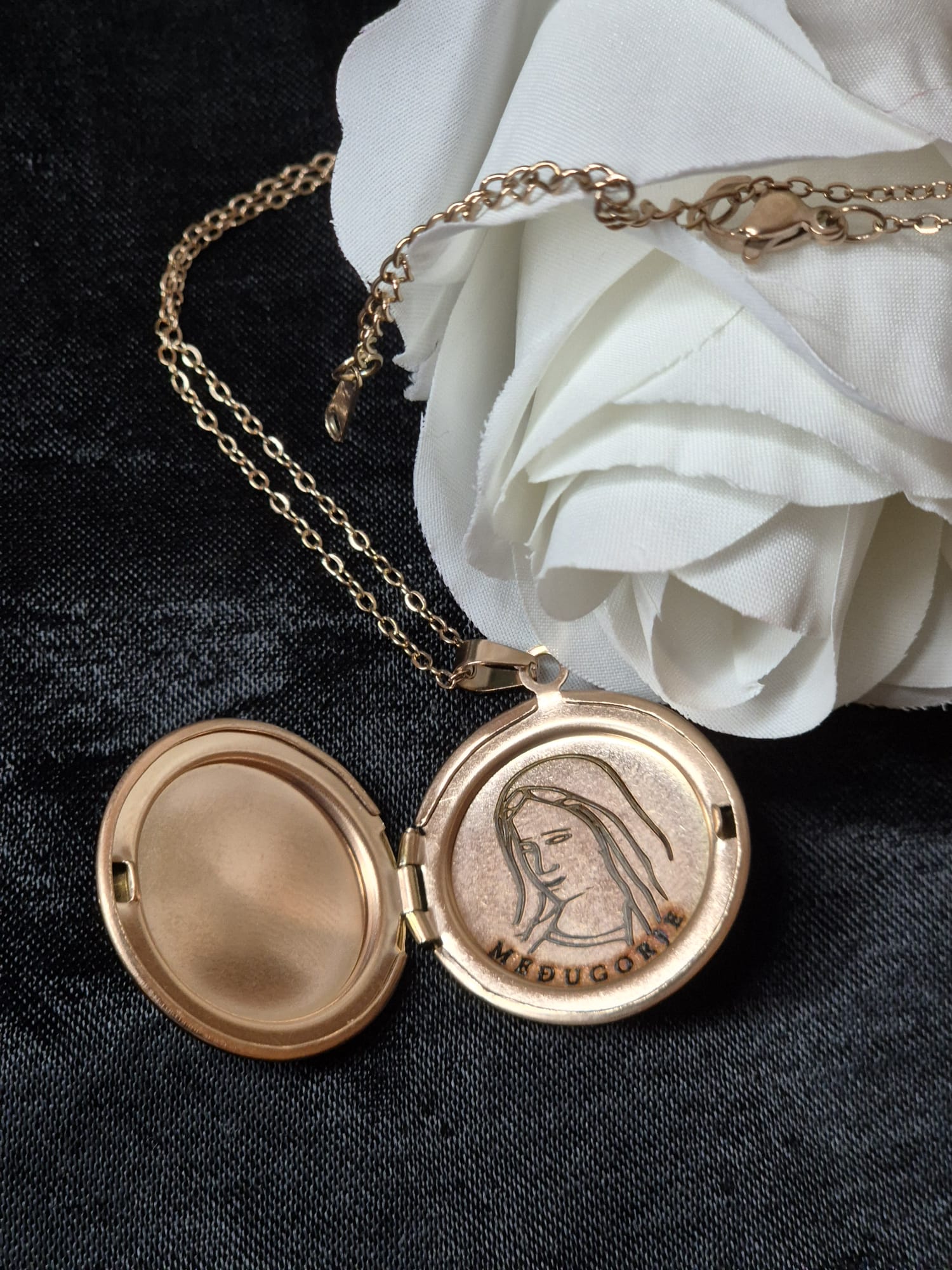 Virgin Mary necklace,oval folding medaillon,PVD premium plated,rosa gold.It could be also yellow gold or silver plated,customized&engraved